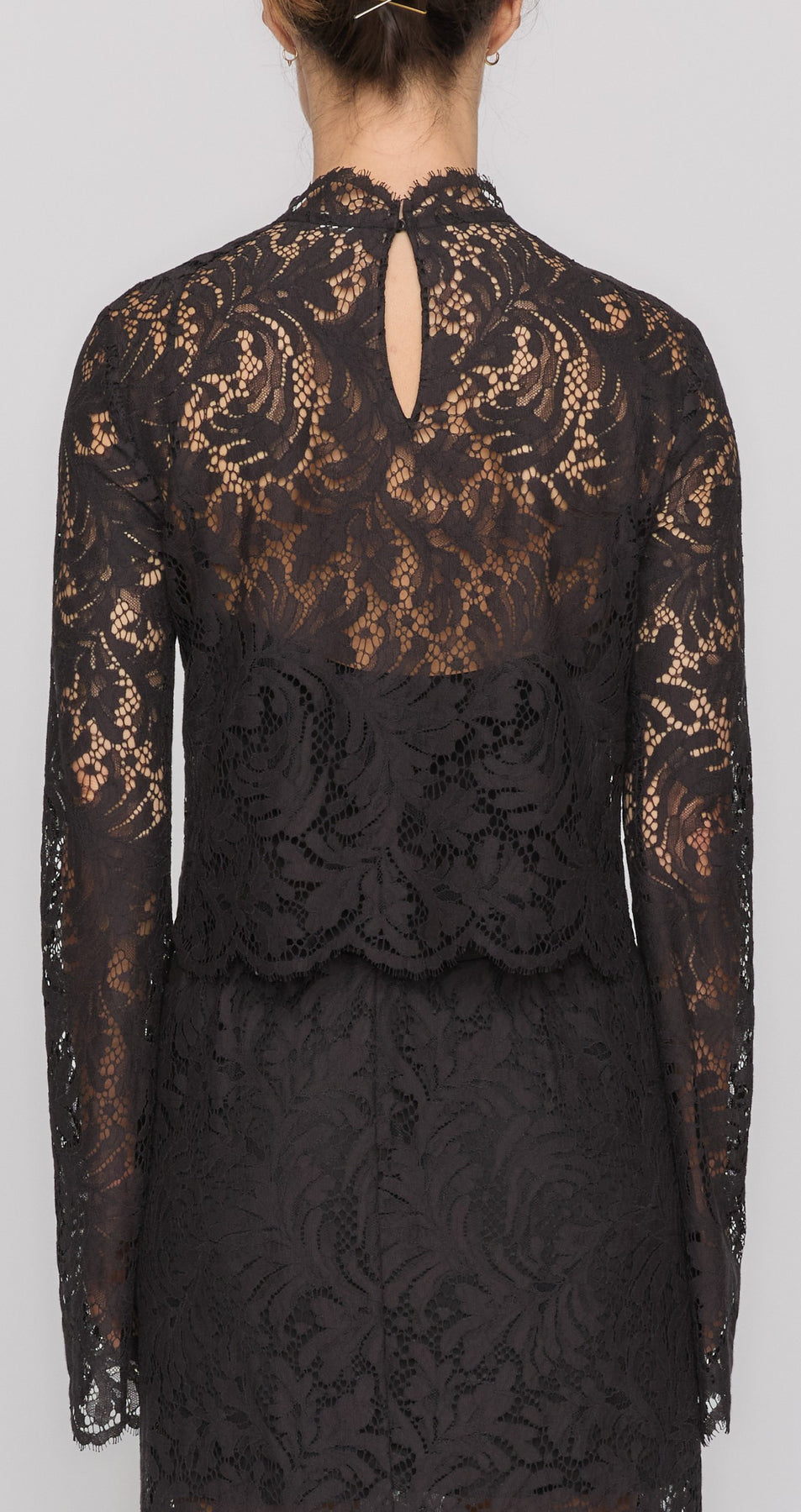 - Back keyhole vent with tonal buttons for a tailored touch